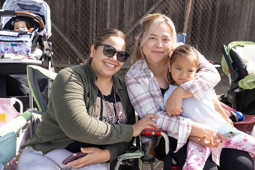 Lisett (holding child) and her friend Diana brought their children to the parade.
