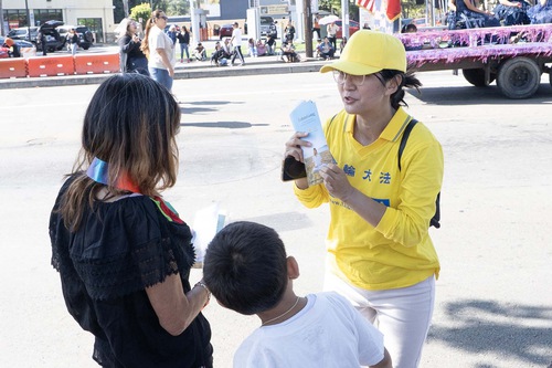 (Minghui.org) Falun Gong practitioners participated in the 70th annual Newark Days parade on September 20, 2025, in Newark, California. They were very well received, with the mayor personally thanking them for their participation. The spectators were enthusiastic about Falun Gong and many people said they wanted to learn the Falun Gong exercises.