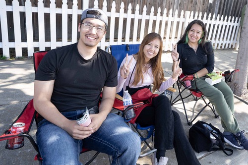 Jeff and his friends Marie (center) and Brittney said they were happy to see Falun Gong practitioners in the parade.