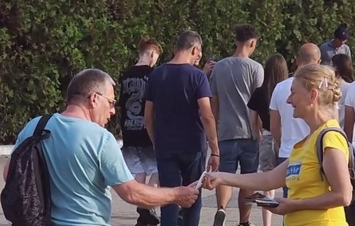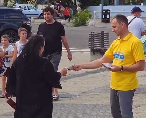 At their event near the Perla Hotel in Constanța, practitioners told people about Falun Dafa, its principles, and the fact that, in China, under the communist regime, Falun Dafa practitioners are persecuted for their belief. Some people said they’d heard of Falun Dafa before.