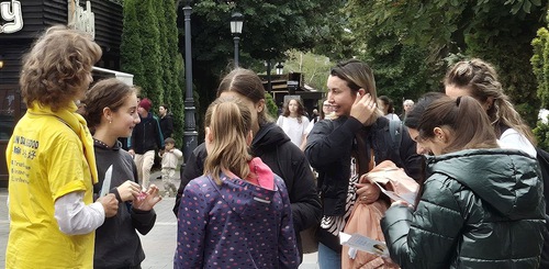 Practitioners introduce Falun Dafa during an event in Deva on September 5 and 6.