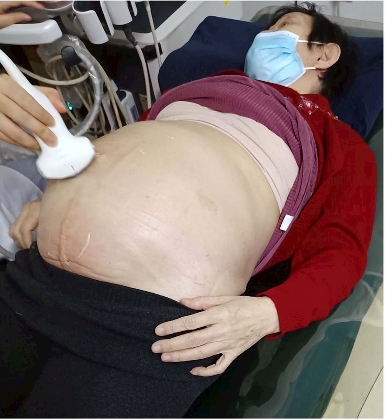 Ms. Chi Fengying receiving an examination at the hospital