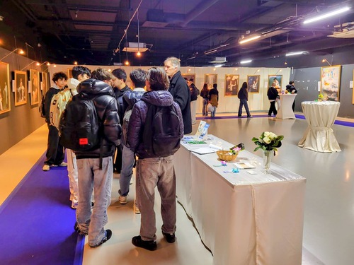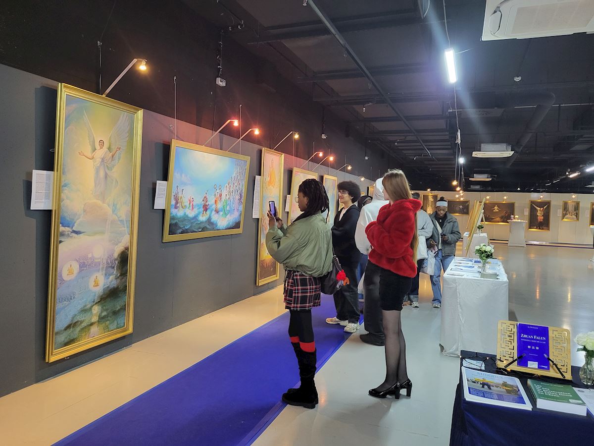 (Minghui.org) (Continued from Part 1) The Art of Zhen Shan Ren (Truthfulness, Compassion, Forbearance) Exhibition was held in Belgium, from December 12, 2025 to January 11, 2026. The exhibition was located in Îlot Saint-Michel near the renowned Place Saint-Lambert in Liège, the fourth largest city in Belgium which is located in the French-speaking region.