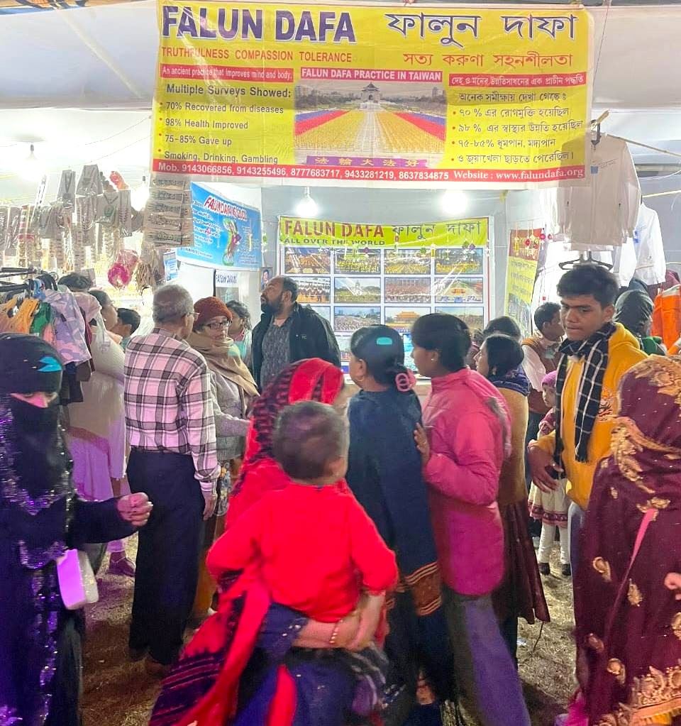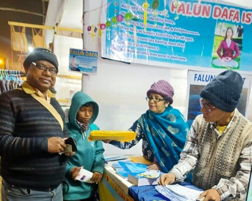 Falun Dafa practitioners from Kolkata drove 212 kilometers (appropriately 132 miles) to introduce Falun Dafa to thousands of people who attended the fair—they wished to share the practice that has benefited them with others.