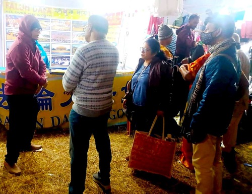 A relative in Santiniketan suggested that with so many people coming to the Poush Mela, it would be a good opportunity to introduce Falun Dafa. Sinha lost no time in making the arrangements. On the first day of the fair, she said she made the right decision when she saw people coming to the booth on their own and wanting to know about Falun Dafa.