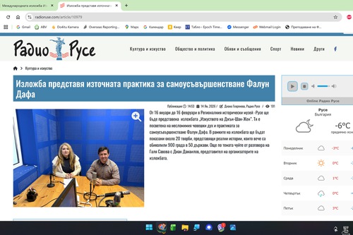 Two days prior to the opening of the exhibition, Radio Ruse, a regional radio program, invited Dian Danilov, one of the exhibition’s organizers, as a special guest on its art and culture segment. Danilov explained the meaning of the exhibition’s artworks, as well as the history of Falun Dafa as a spiritual discipline.