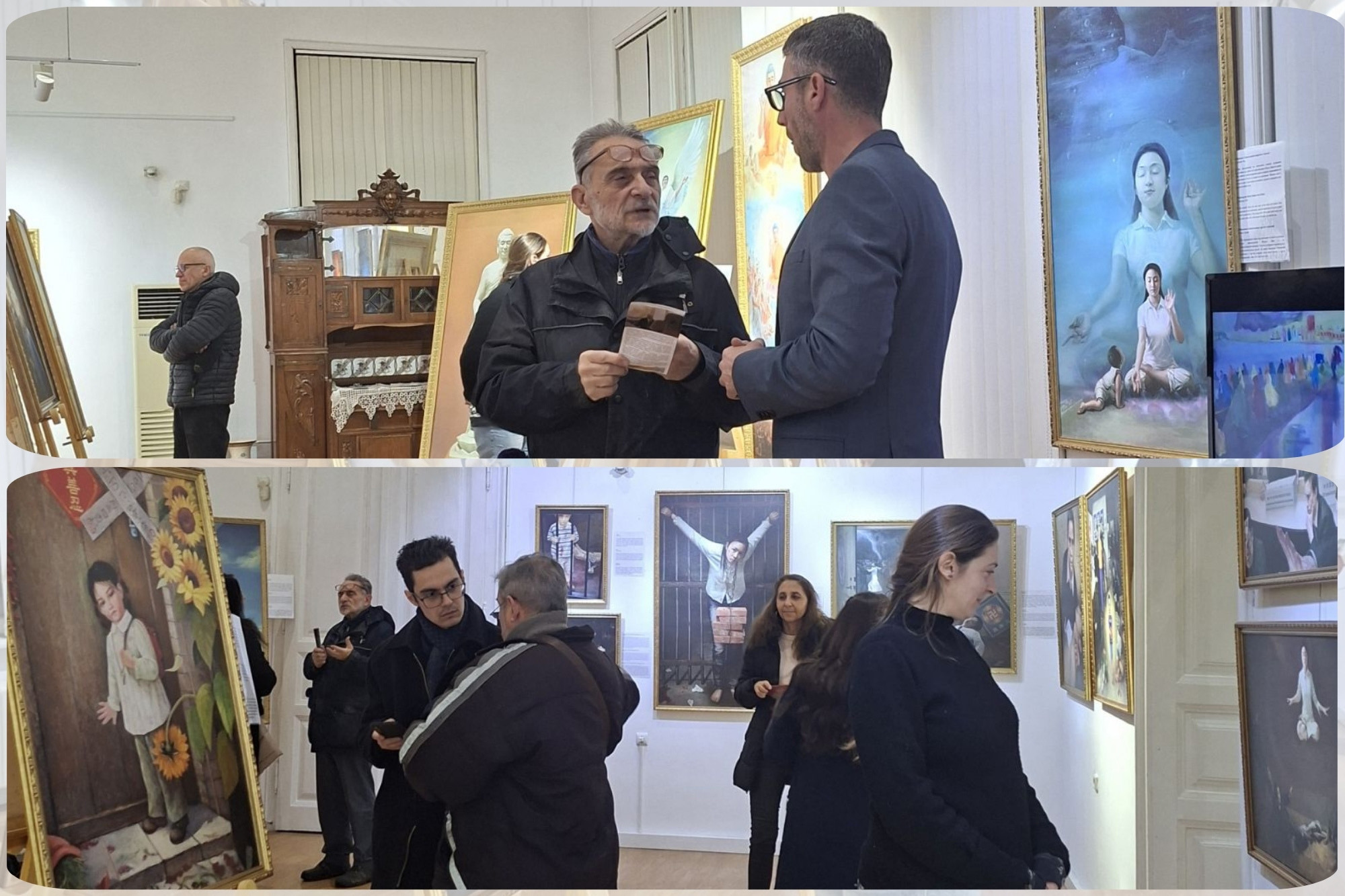 (Minghui.org) The Art of Zhen-Shen-Ren exhibition opened in Ruse, Bulgaria on January 16, 2026. The exhibition features a collection of 28 oil paintings, all created by practitioners of Falun Dafa (also called Falun Gong) who escaped or survived the Chinese Communist Party’s (CCP) religious persecution.