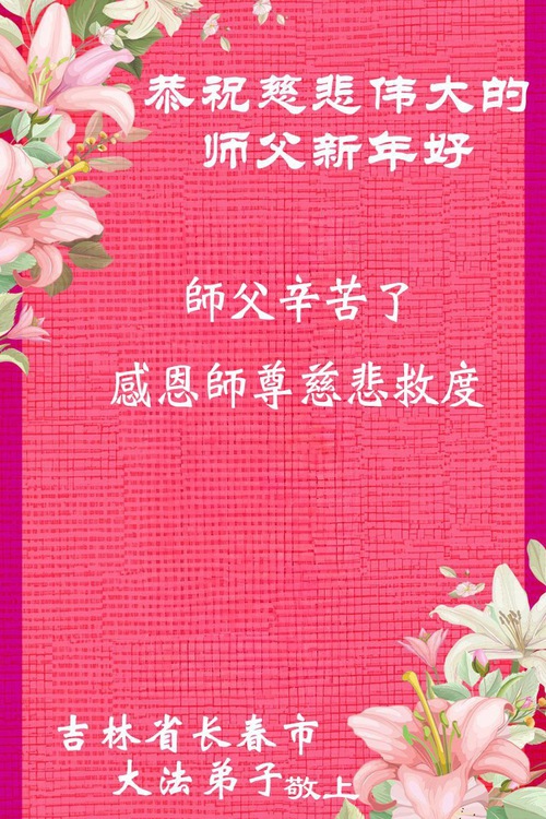 (Minghui.org) In this report, we present a selection of the 102 greetings sent from Falun Dafa practitioners in Changchun City, Jilin Province, China: