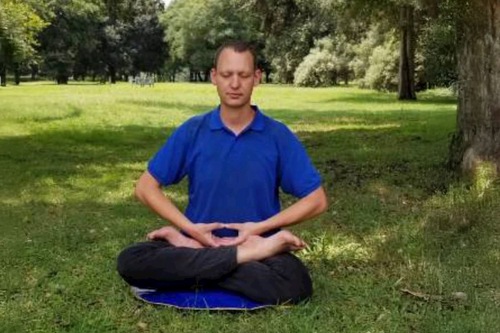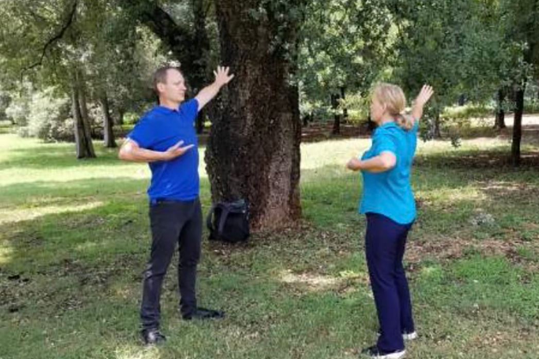 Andrie from Joburg practices the Falun Dafa exercises at a park.