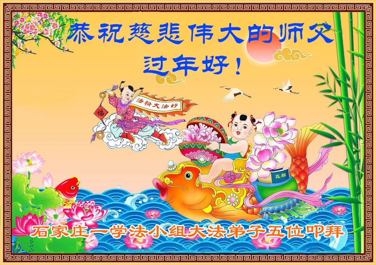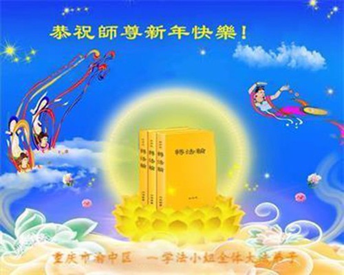 A greeting was sent by a practitioner in Chifeng City, Inner Mongolia: “I had congenital heart disease when I was a child. I couldn’t sleep at night due to the pain. Falun Dafa saved me and my family,” he wrote. “Not only that, Dafa showed me the principles of Truthfulness-Compassion-Forbearance, through which I constantly improve myself to be a good and better person. I am healthier than a young person, and my entire family enjoys a harmonious, happy life. Thank you Master Li!”