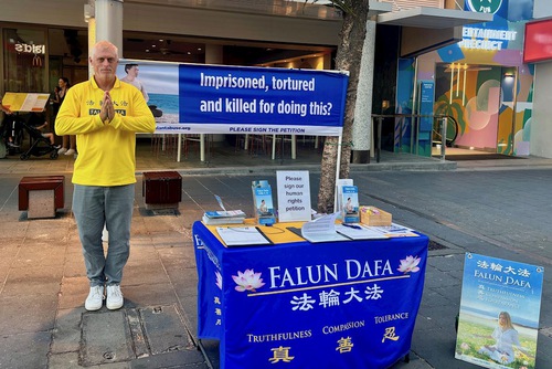 “I live in a small town. Each round trip between the truth-clarification site and my home requires more than two hours by car. At Surfers Paradise, I meet locals and tourists who never heard of Falun Dafa. I tell people about the beauty and goodness of Falun Dafa and expose the Chinese Communist Party’s (CCP) lies regarding the ongoing persecution of practitioners. This helps people understand the truth and turn away the lies spread by the Party. Those who understand the truth will have bright futures. I know my efforts to help people and create a better world are meaningful.