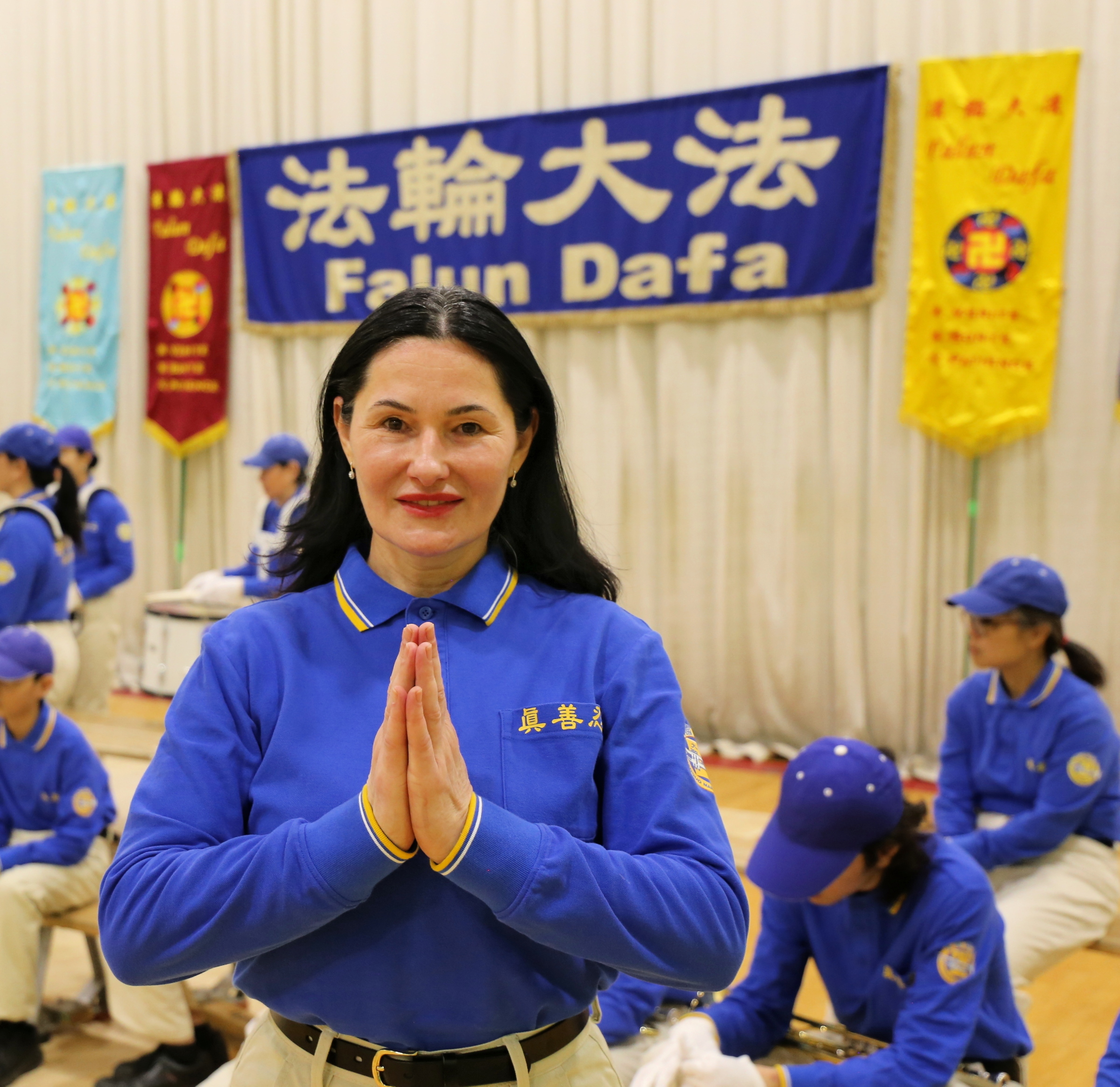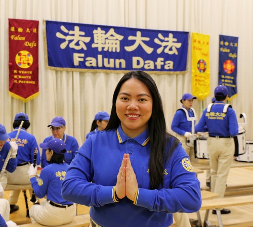 Camelia is an educator, and she plays the cymbals in the Tian Guo Marching Band. She met a Falun Dafa practitioner at work in 2011, who suggested she read Zhuan Falun. She finished reading the book in one go and only slept a few hours that night. She was very attracted to the book, and read it again. Four days later, she started to read the book for the third time.
