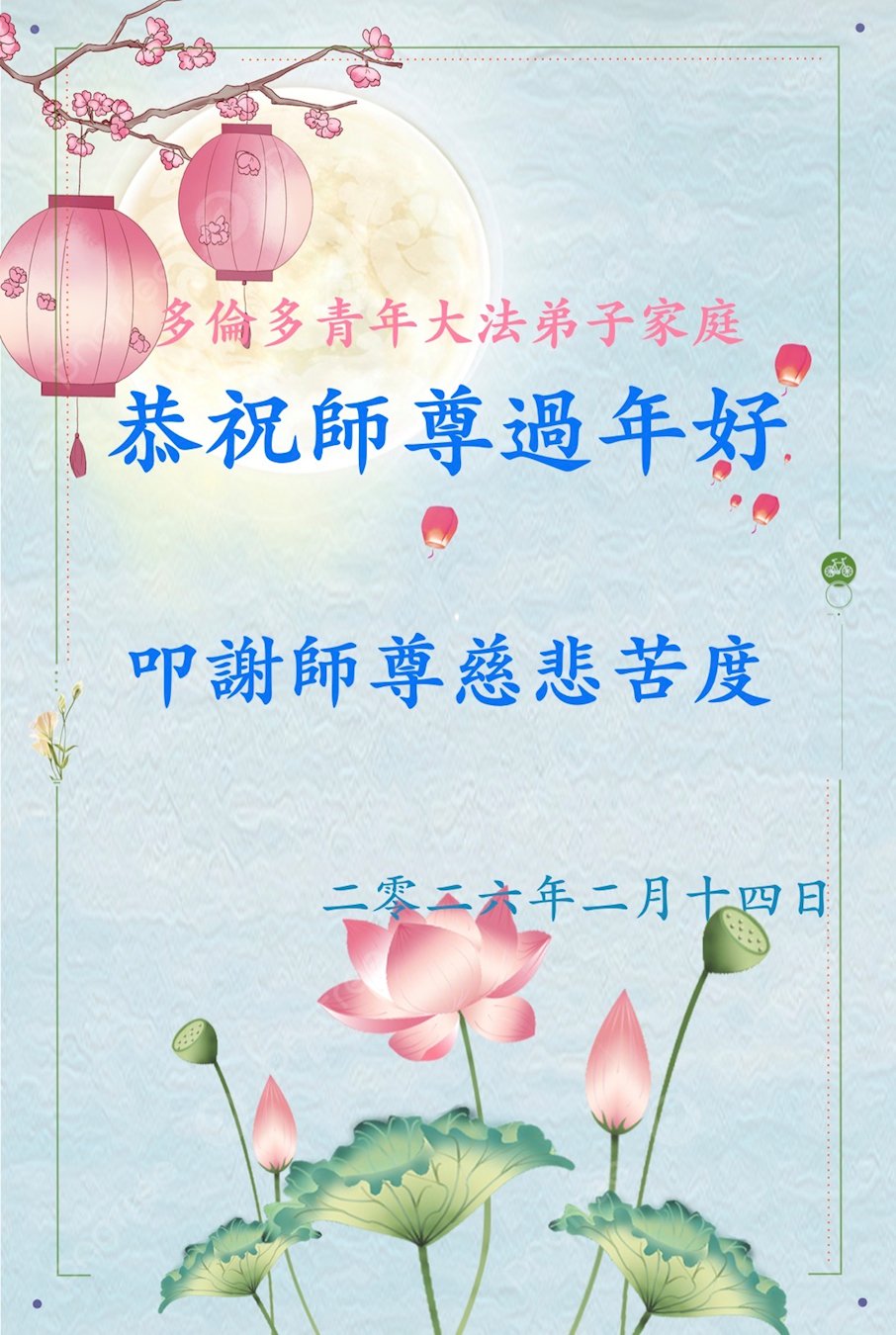 New Year Greetings to Master from a practitioner’s family in Toronto