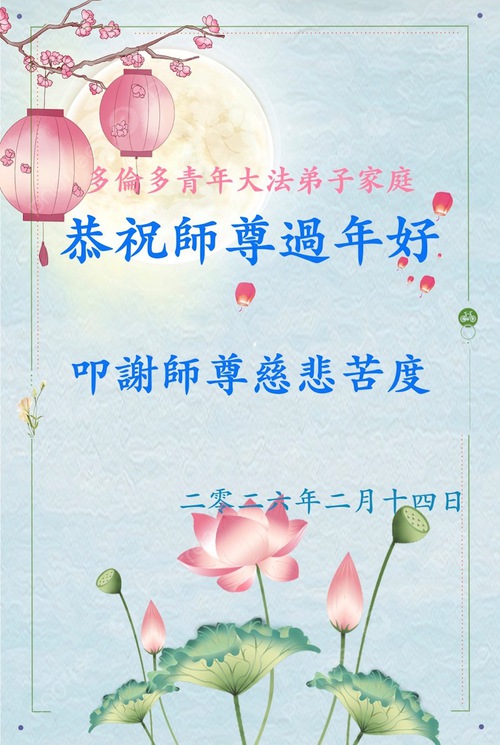 New Year Greetings to Master from practitioners at the 393 truth-clarification site in Toronto