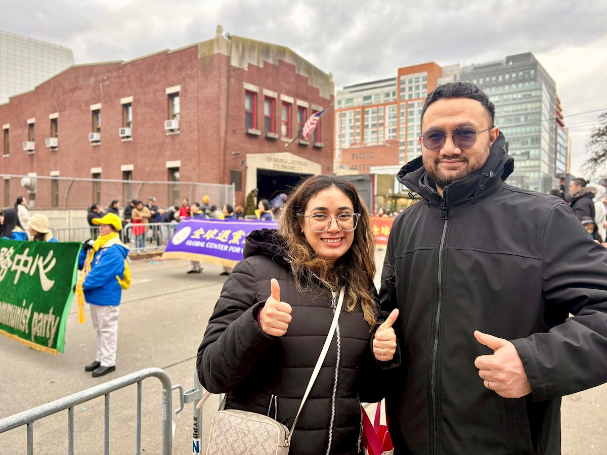 Ashita Sabuda is a nurse in New York City, and she’s originally from Nepal. She said she could feel the practitioners’ positive energy. “Their formation is wonderful and I like it a lot,” she explained. She said the music, color, and the entire visual effect were awesome. Seeing words, “Truthfulness-Compassion-Forbearance” on the banners, she believes these principles apply to everyone, and she would like to know more about Falun Dafa.