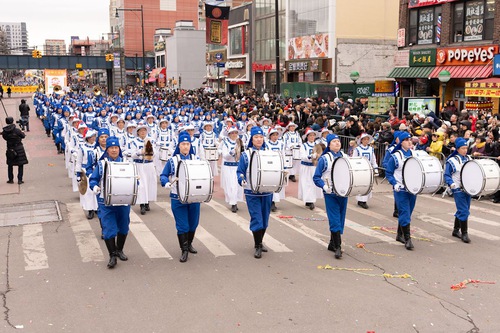 (Minghui.org) Practitioners in New York participated in the Chinese New Year parade in Flushing on February 21, 2026, to introduce Falun Dafa. As the largest Chinese New Year parade in the region, the event attracts thousands of spectators, many of whom said they were impressed by the practitioners’ performances.