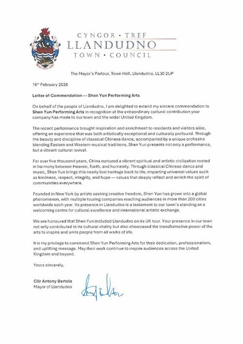 “It is absolutely superb in terms of choreography, the colors, the costumes, the movements, the fluidity, the orchestra and the combination, the timing of the music and the way the dancers move,” said Antony Bertola, Mayor of Llandudno after he watched the show on February 14.