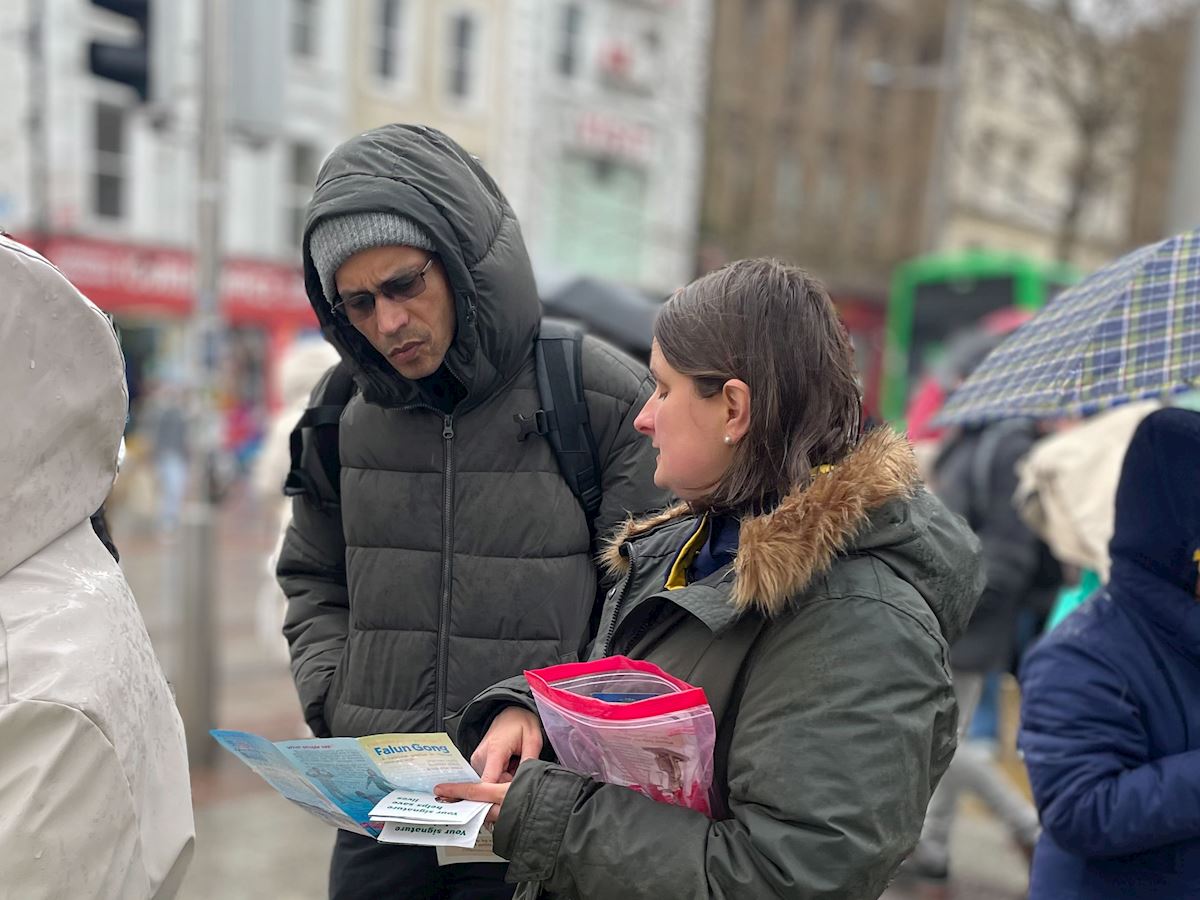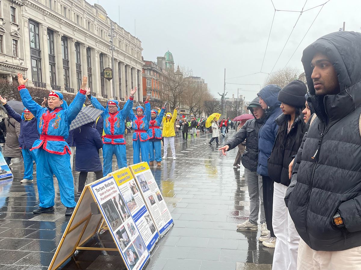 (Minghui.org) Falun Dafa practitioners held activities in Dublin’s city center on February 21, 2026. They introduced Falun Dafa (also known as Falun Gong) and told tourists and local residents how the Chinese Communist Party (CCP) persecutes the spiritual discipline.