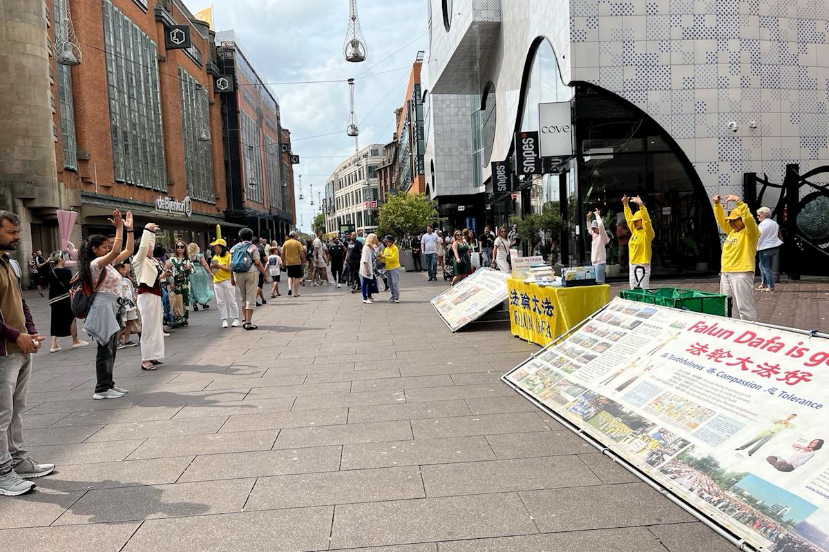 Practitioners regularly hold events at Grote Markststraat, a commercial street in the center of The Hague, to raise awareness about the persecution of Falun Dafa in China.