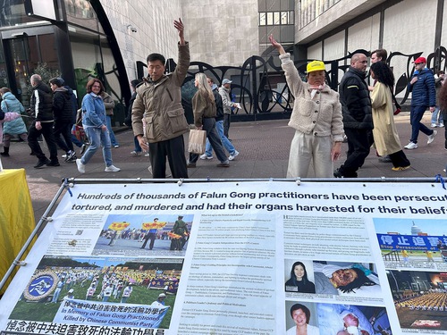 People read display boards with information about Falun Dafa and the CCP’s persecution.
