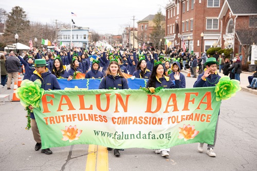Falun Dafa practitioners participated in the St. Patrick’s Day parade in Upstate New York on March 15, 2026.