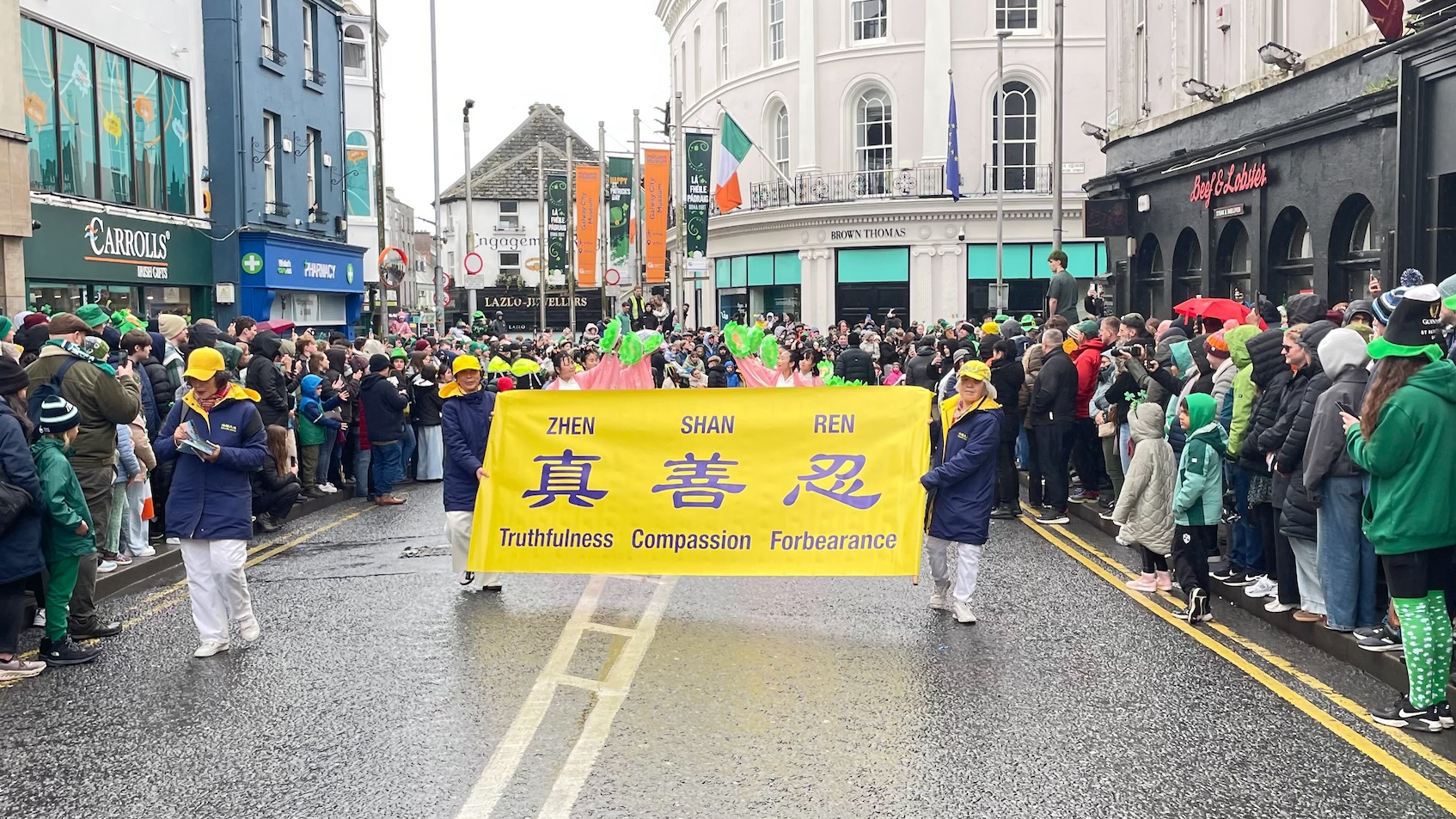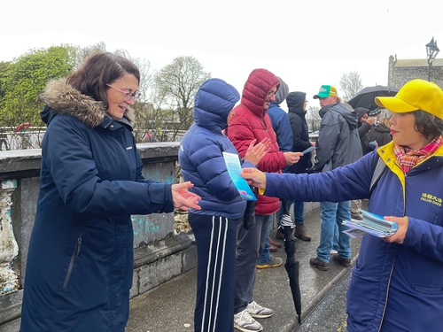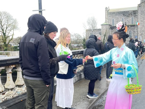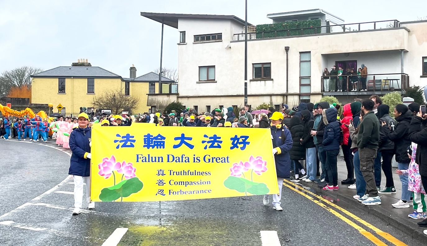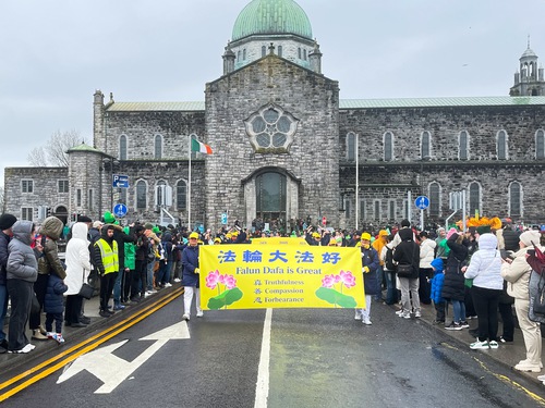 (Minghui.org) Saint Patrick’s Day is celebrated throughout Ireland with parades and festivals. Galway held its annual parade on March 17, 2026, despite a light drizzle that morning. Just as in past years, this did not dampen people’s spirits.