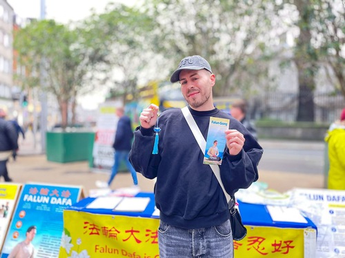 (Minghui.org) “They emit good energy. I feel a strong energy around these people,” Andrzej, a tourist visiting Ireland, said while he watched practitioners quietly do the exercises in Dublin, Ireland’s capital city, on March 21, 2026.