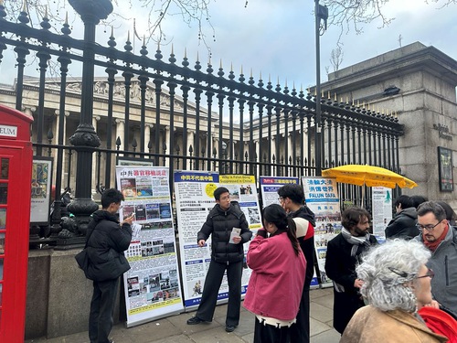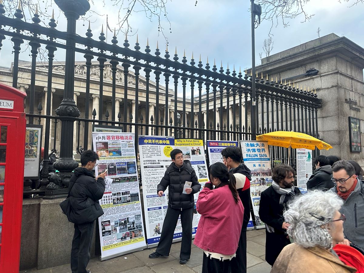 To help people, especially Chinese tourists, learn what Falun Gong is and refute the CCP’s defamatory propaganda, practitioners maintain a presence near the British Museum, which is a popular landmark. Their activity received a permit from the local government and is protected by London police.