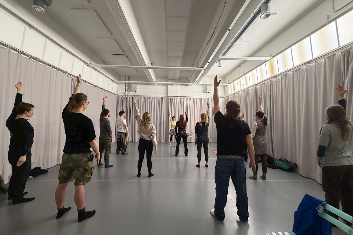 Heikki (second from right) and his friends learning the exercises