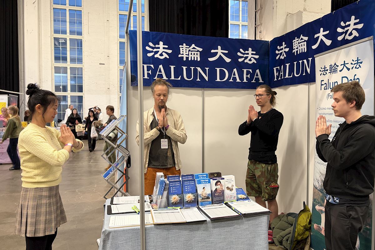 (Minghui.org) Falun Dafa practitioners participated in the Yoga Festival Helsinki 2026 from February 28 to March 1. The event brought together the concepts of yoga and wellness and included yoga and meditation classes, Pilates, workshops, lectures, and other exhibitors. This year’s theme was “Connection.”