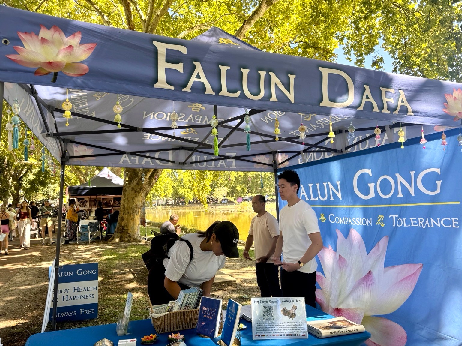 Tegan Green went to the Falun Gong booth and said she wished to learn the practice. She said, “This world needs more Truthfulness, Compassion, and Forbearance.”