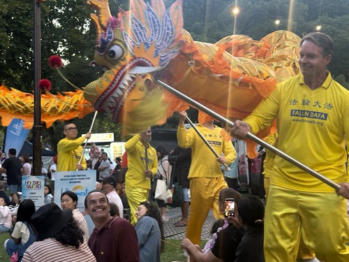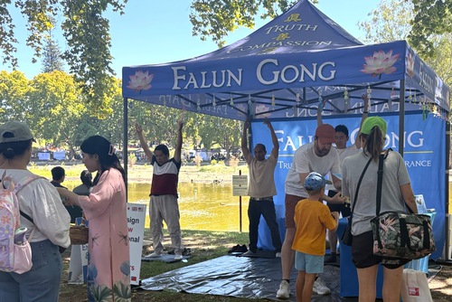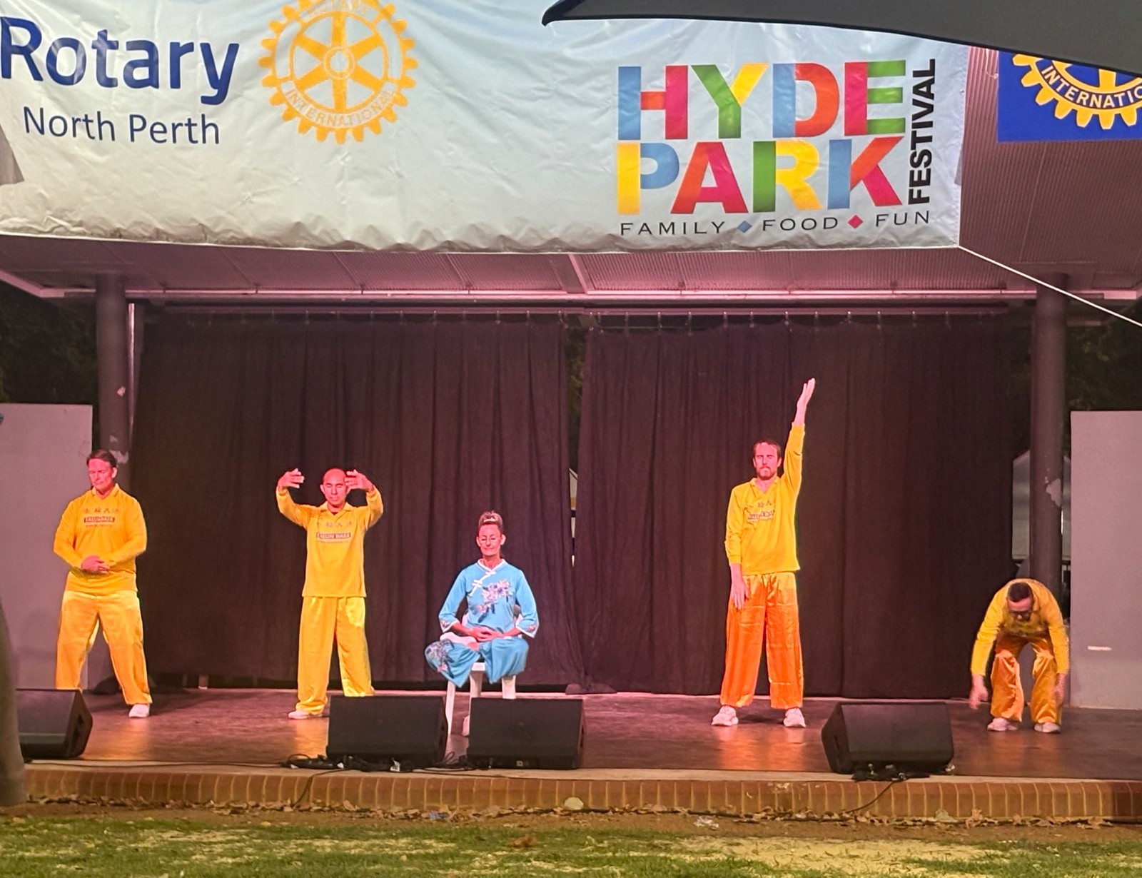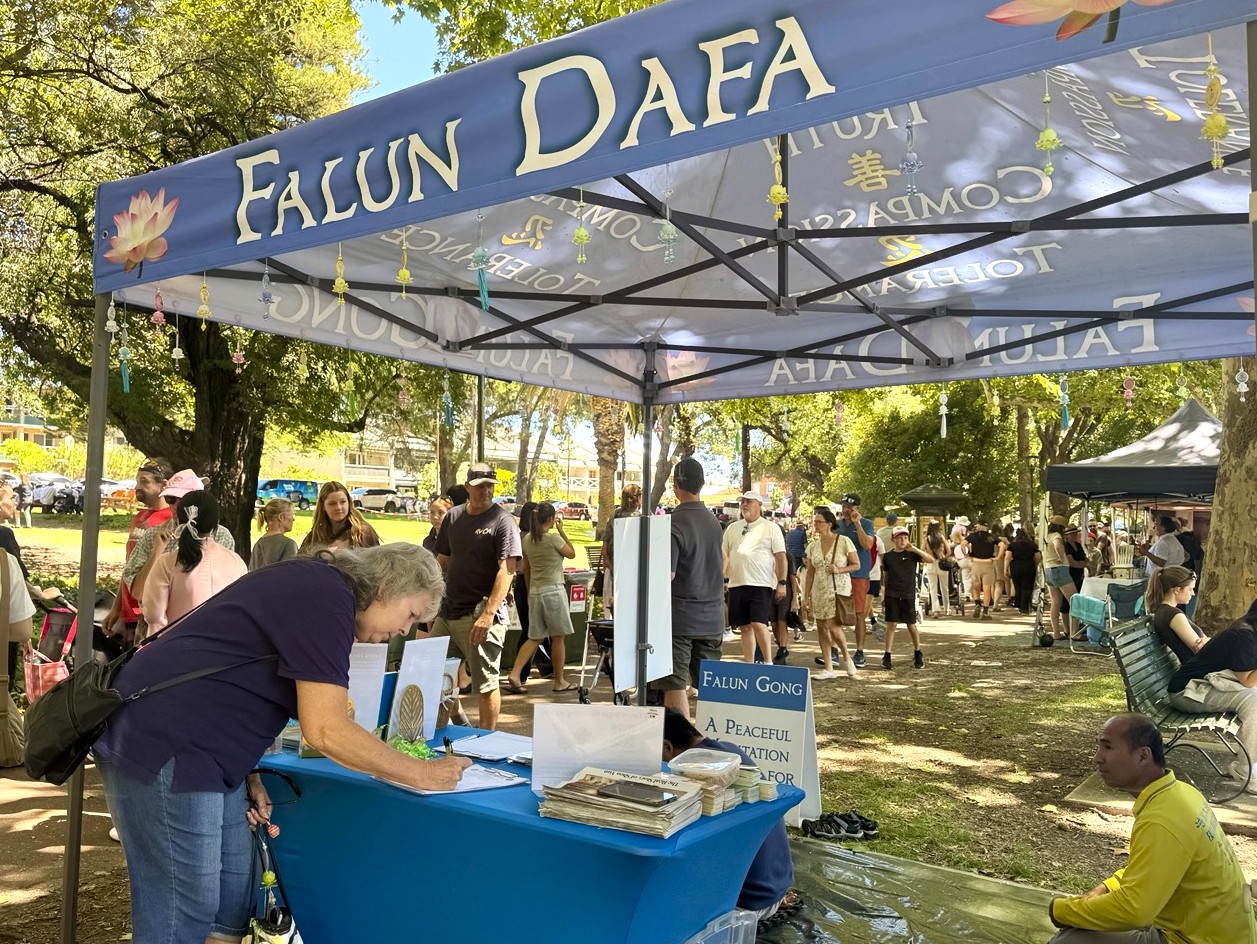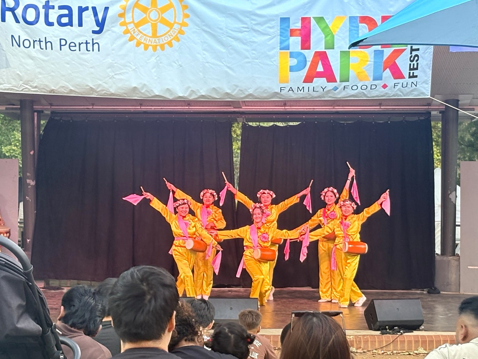 (Minghui.org) The annual Hyde Park Festival was held in Perth, Australia, on March 1 and 2, 2026. Falun Dafa (Falun Gong) practitioners were invited to participate. They introduced the universal values of Truthfulness, Compassion, and Forbearance and raised awareness of the Chinese Communist Party’s (CCP) persecution. They also demonstrated the exercises and performed a dragon dance, waist drums, and danced on stage.