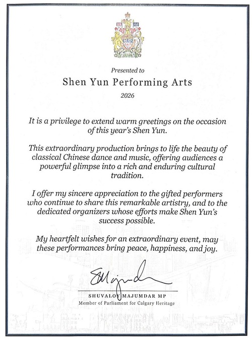 “Shen Yun offers audiences a unique opportunity to experience the beauty, history, and resilience of this rich cultural heritage. Your dedication to sharing and preserving these traditions brings inspiration to communities across our province.”