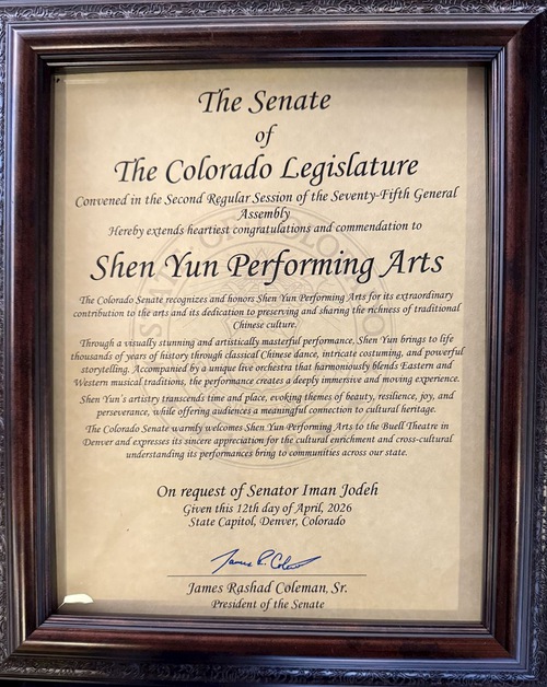 “What we’re bringing today is a tribute to Shen Yun and the cultural diversity that it brings to Colorado. [We’re] honoring Chinese culture through dance and story, and we wanted to make sure that we are fostering that diversity for the people of Colorado,” Ms. Jodeh said.