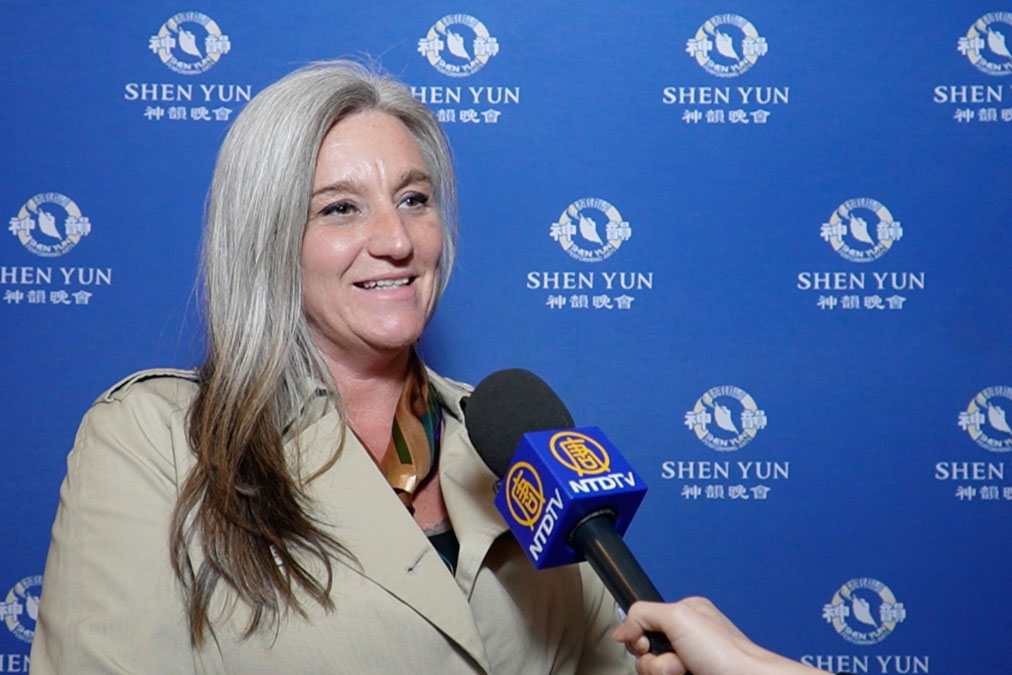 Jennie Goodpaster, manager of an American charity, saw a Shen Yun performance in Minneapolis on the evening of March 27, 2026. (Screenshot courtesy NTD Television)