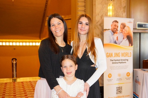 On the afternoon of March 21, 2026, American dance teacher Linda Dawes (left) and her two daughters watched Shen Yun performance in St. Louis, Missouri. (Screenshot courtesy The Epoch Times)