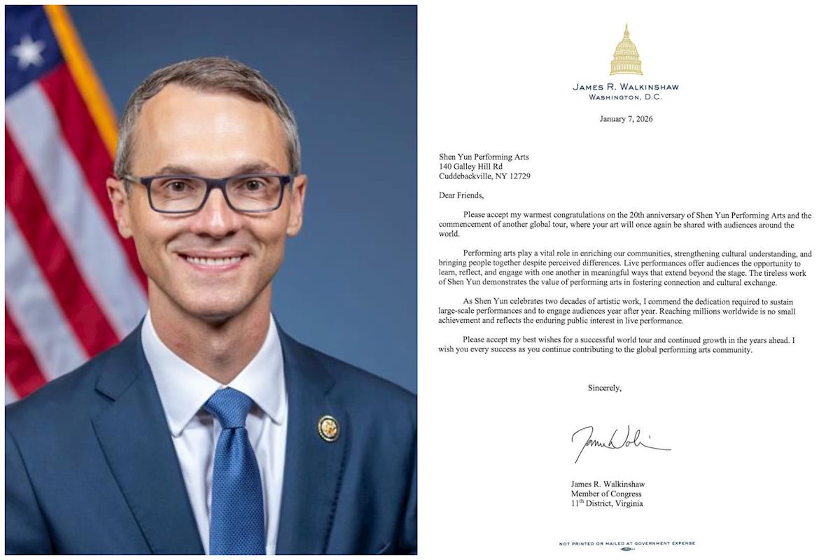 Congressman James Walkinshaw wrote: “Please accept my warmest congratulations on the 20th anniversary of Shen Yun Performing Arts and the commencement of another global tour, where your art will once again be shared with audiences around the world.