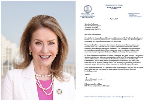 “On behalf of myself and the Senate of Virginia, I extend my sincerest congratulations to the entire Shen Yun Performing Arts family. May you continue to educate, enrich, and inspire audiences across the globe for many years to come.”