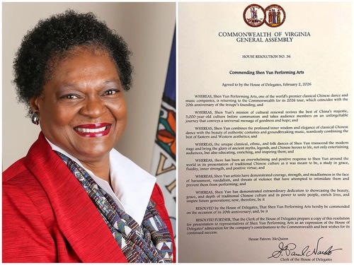 The Virginia House of Delegates passed House Resolution No. 36, “Commending Shen Yun Performing Arts.” The House Patron for this Resolution was Delegate Delores L. McQuinn. She enjoyed seeing Shen Yun before and plans to watch Shen Yun again with her two granddaughters in Norfolk.