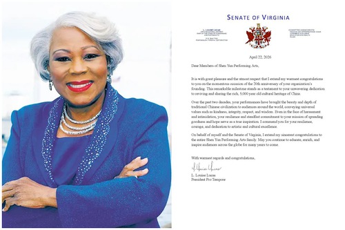 L. Louise Lucas, President Pro Tempore of the Senate of Virginia, wrote in a letter to Shen Yun: