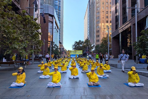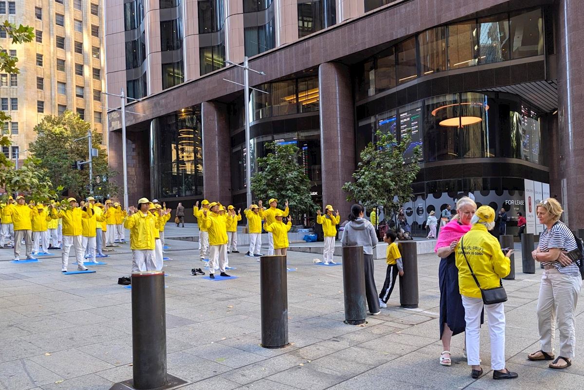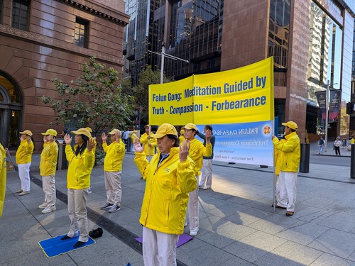 Practitioners demonstrate the Falun Gong exercises on Martin Place on April 16.