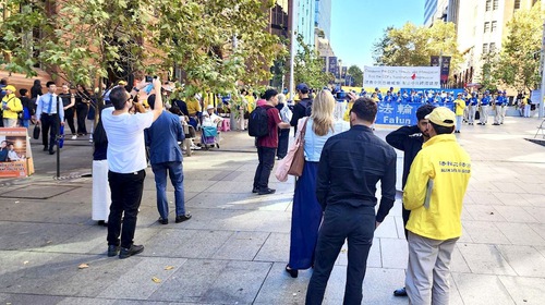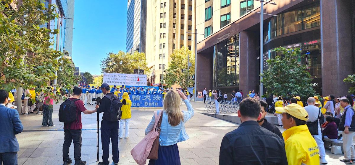 (Minghui.org) (Continued from Part 1) To commemorate the 27th anniversary of the peaceful April 25 Appeal in Beijing, Falun Gong practitioners in Australia held a rally at Martin Place, Sydney’s business and financial center, on April 16, 2026.