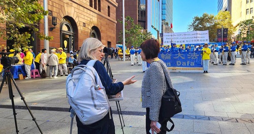 She said that such events were good, “This is indeed a very clear way to convey the truth, because many Australians may not yet be familiar with Falun Gong. If they understood that, in China, people can be punished simply for their beliefs, I think most Australians would be shocked. The absence of freedom—the inability to think, speak, or practice one’s faith openly—is, to us, truly appalling.”