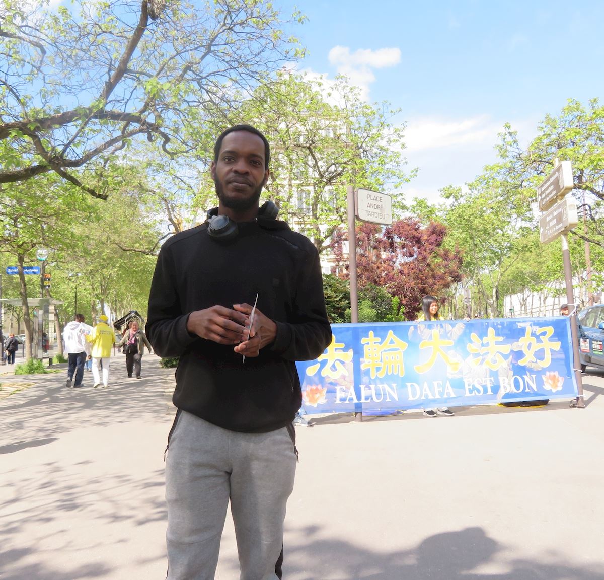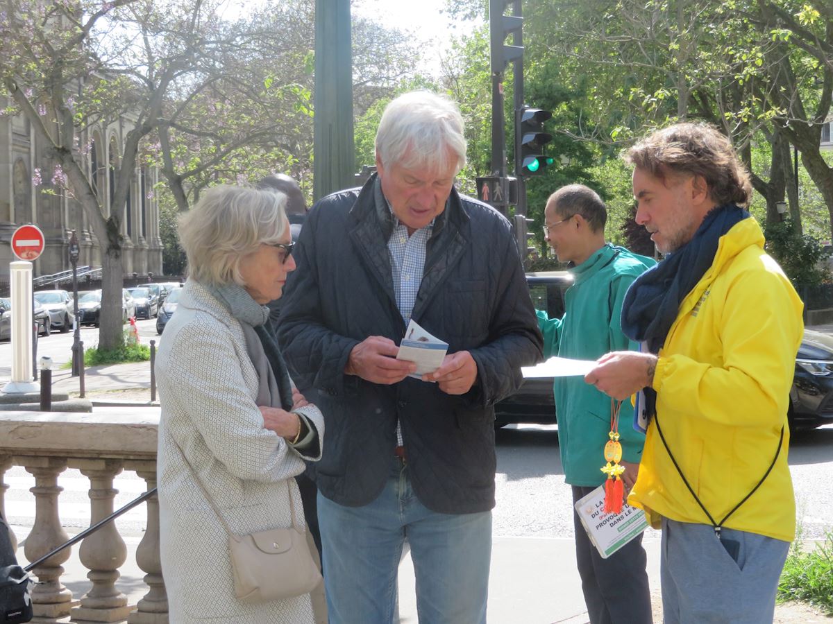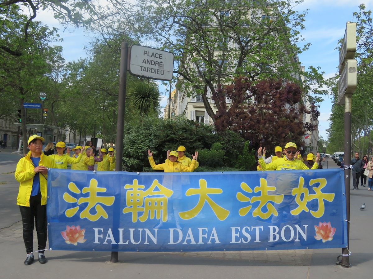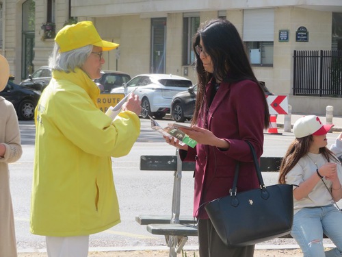 (Minghui.org) Practitioners held activities at Place André Tardieu on April 20, 2026 to commemorate their peaceful appeal in Beijing on April 25, 1999. Local residents and tourists learned about the benefits of practicing Falun Dafa and how the Chinese Communist Party (CCP) continues to persecute the spiritual discipline, including harvesting organs from practitioners while they are alive.