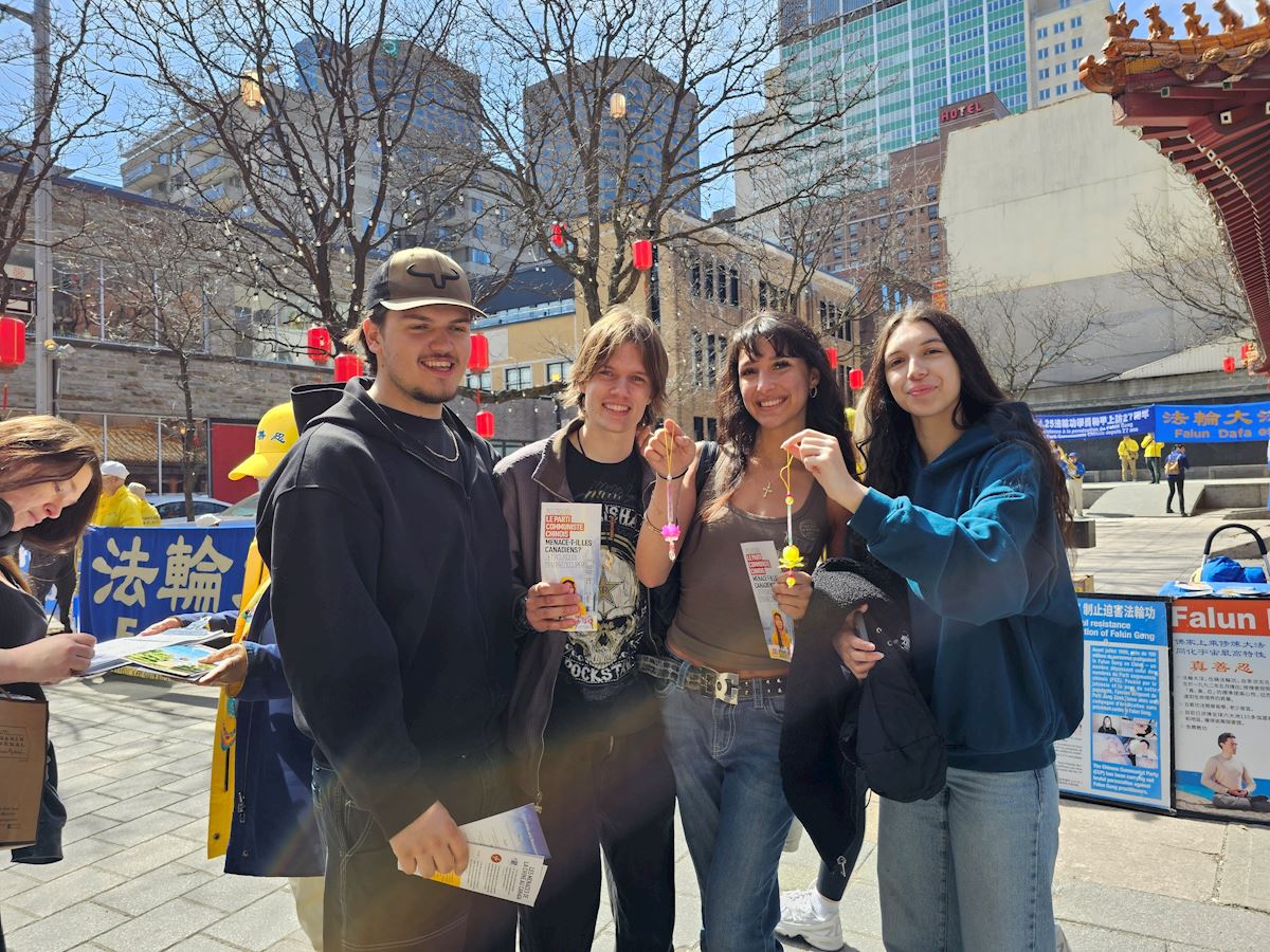 Joel, a drummer from the National Circus School of Canada, said he was attracted by the music and stayed to listen to the speeches. Although he knew the CCP mistreated Chinese people, this was first time he’d heard about the persecution of Falun Gong.