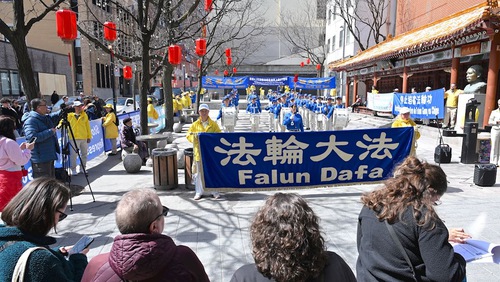 Falun Gong practitioners held a rally in Montreal on April 25, 2026.