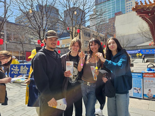 This was the first time these students had even seen a practitioners’ activity. They each took a copy of the Nine Commentaries on the Communist Party. One of them said he’d recently been to a Shen Yun performance and really liked it. “Several people told me that you must see Shen Yun at least once in your lifetime.”