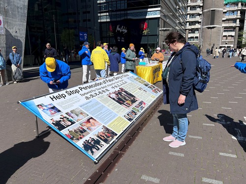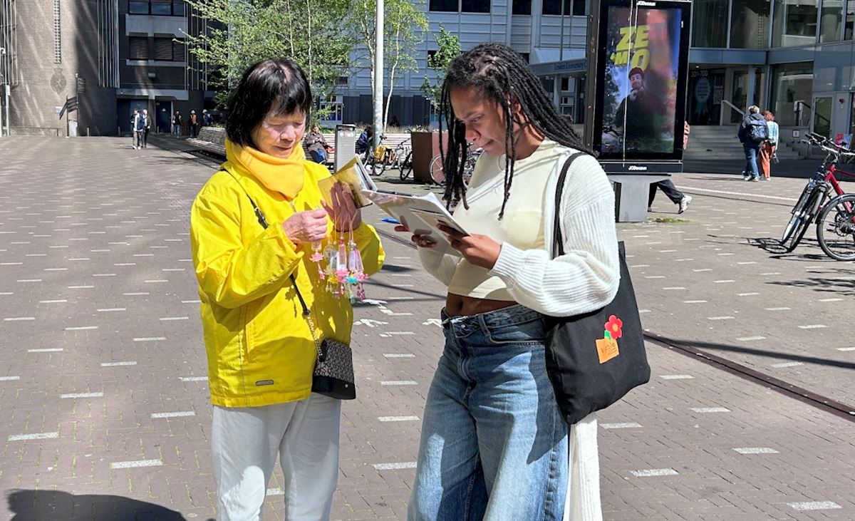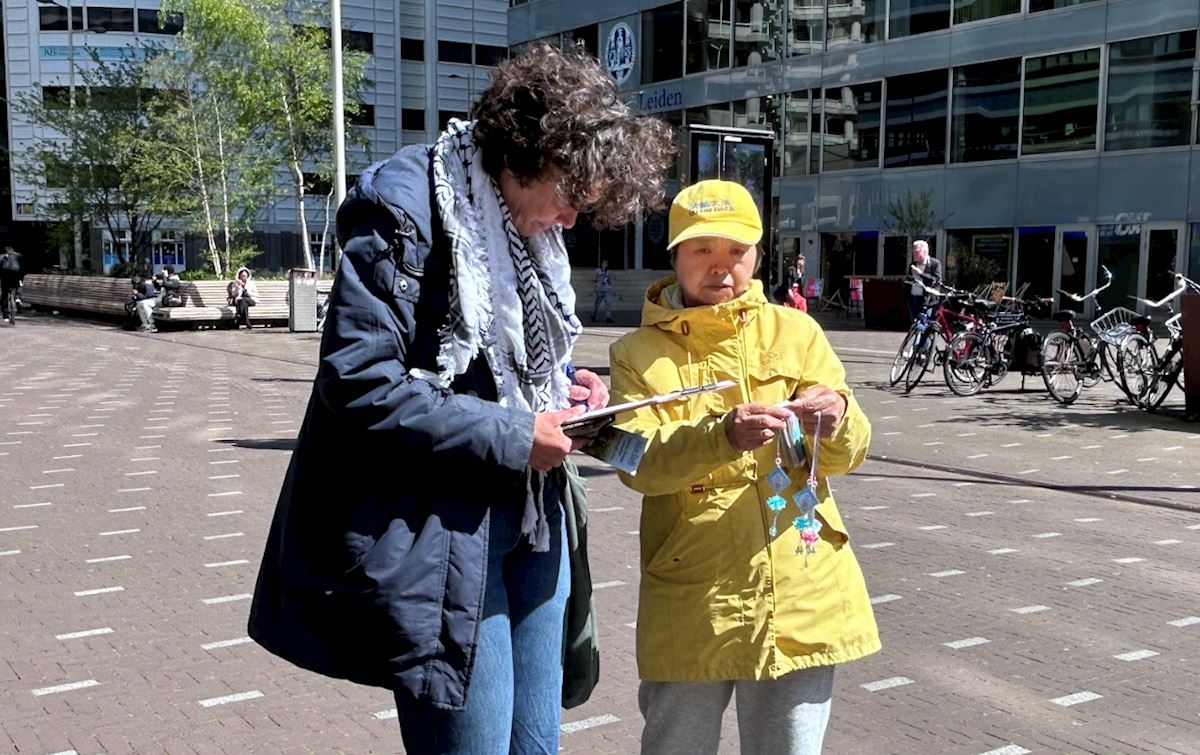 Eline van Wouwe saw practitioners doing the exercises when she passed by the Chinese embassy. She said, “This is the first time I’ve heard of Falun Gong. It is also the first time I’ve heard that you have done so much to fight for the right to practice. Thank you for coming here. I just signed the petition to show my support, and I am thinking of joining you in the practice.”