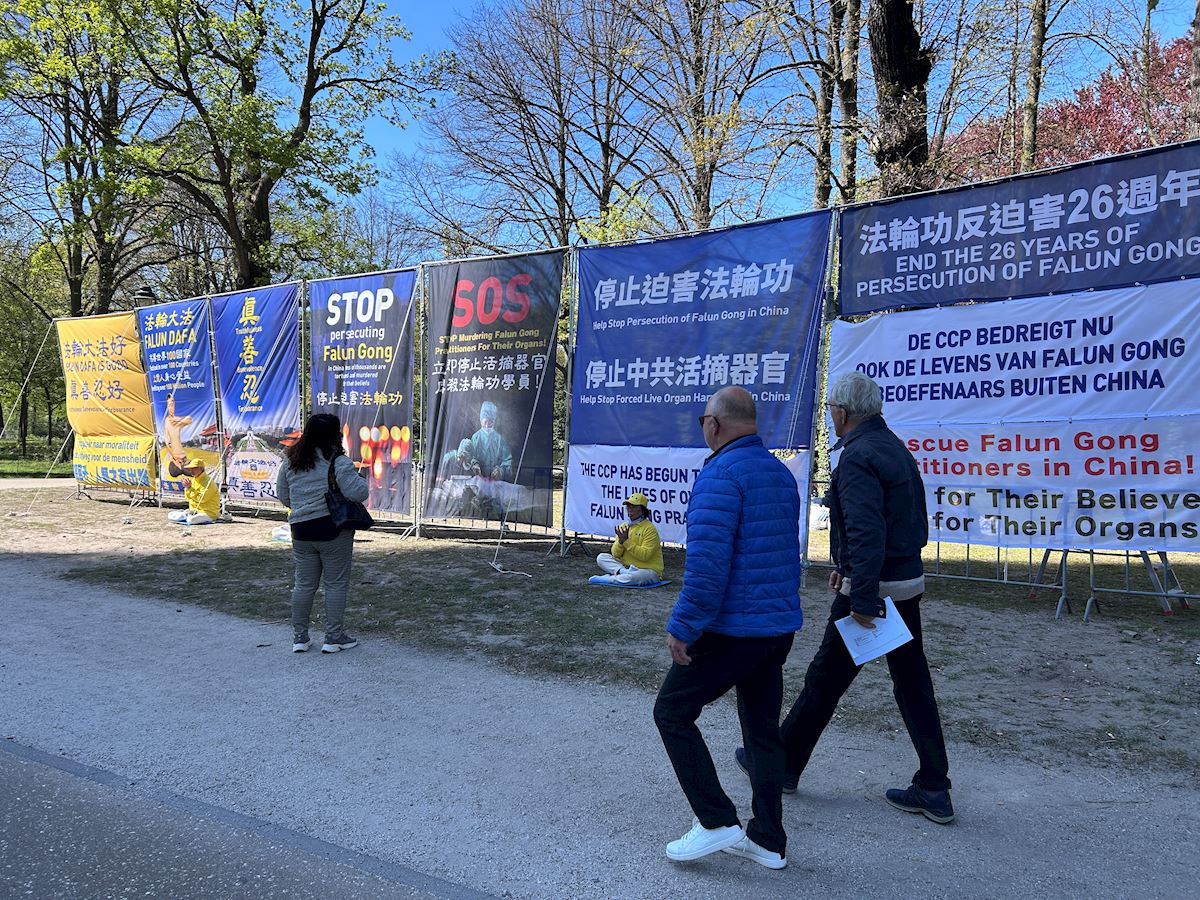 Practitioners in the Netherlands held activities at the Chinese embassy in The Hague as well as near the country’s House of Representatives on April 23, 2026, to mark the 27th anniversary of the Beijing appeal. They called for an end to the persecution.